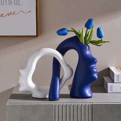 AHORRAR [porcentaje]Jarrón de flores con cara abstracta