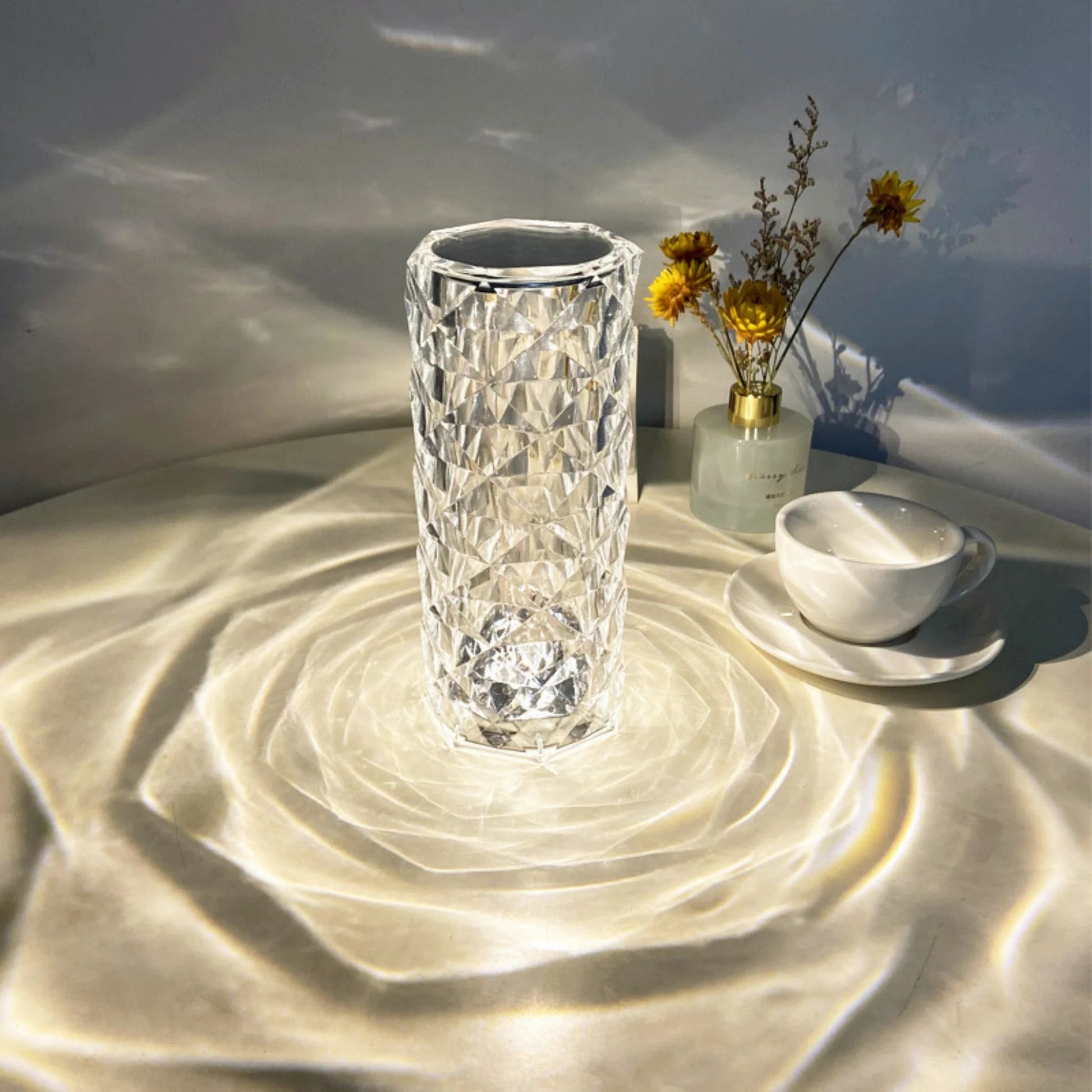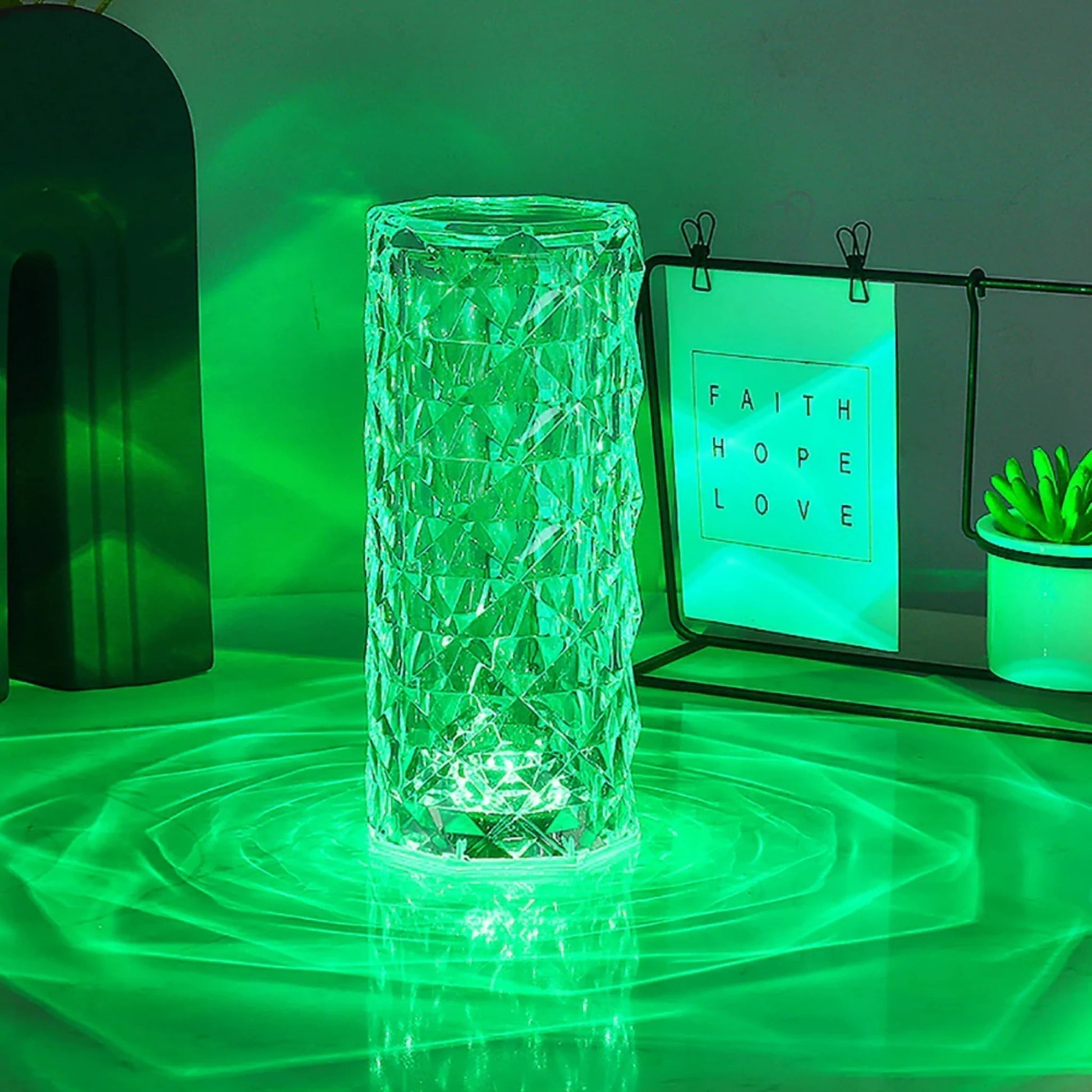 The handcrafted crystal reflects the light and shadow like diamonds, showing charming light effects. The perfect nightlight, desk lamp, or room light!
