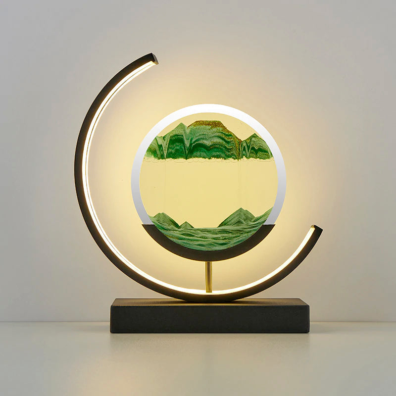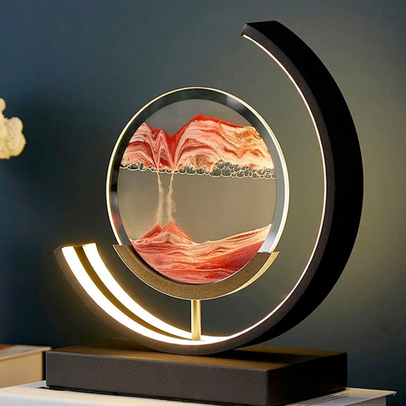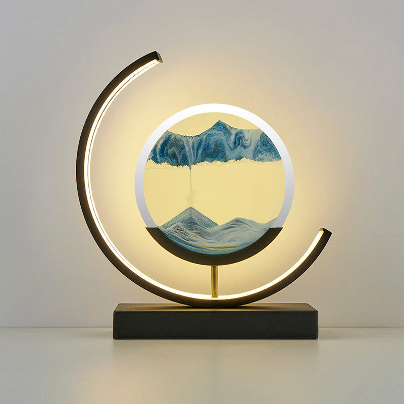- This modern Flowing Sand LED Lamp is composed of iron art lamp body and colored sand. It has a 3D sand painting design. The quicksand falls slowly like a waterfall and flying sand. The mountains, ocean and other scenery are slowly formed, which is pleasing to the eye.